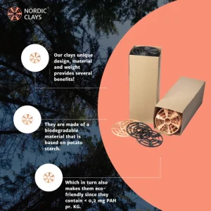 - Nordic Clays can ship up to 75% more clay targets on a regular EU-pallet, compared to the traditional 110 g clay pigeon. (14400 versus 8250 clay pigeons.)
